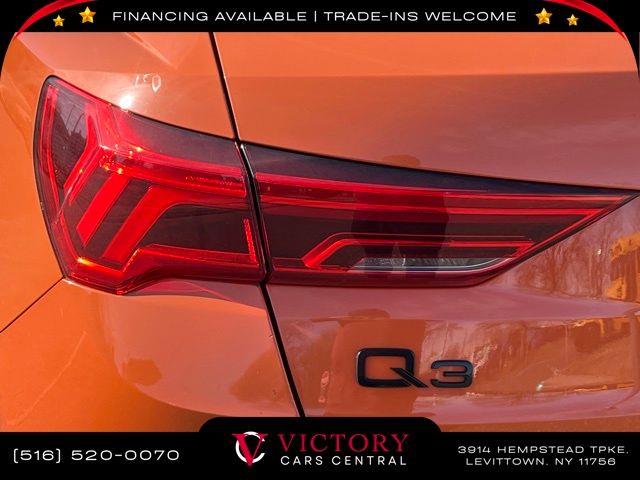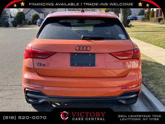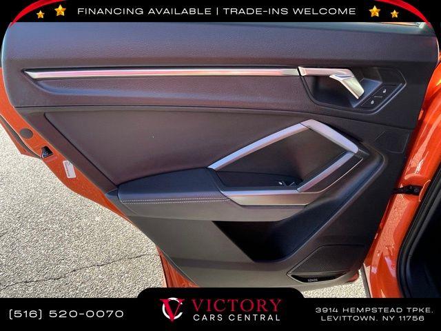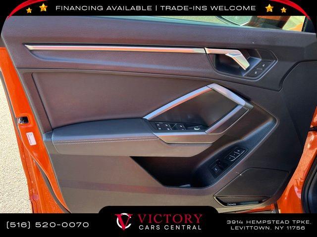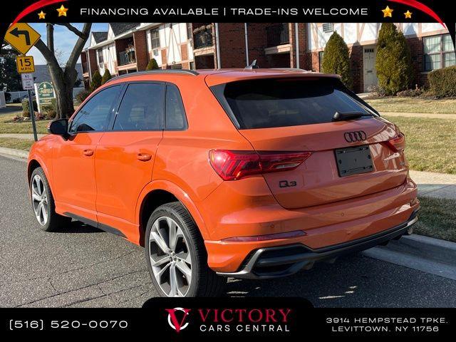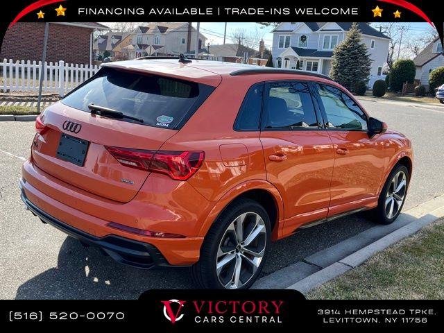 All pricing and details are believed to be accurate, but we do not warrant or guarantee such accuracy. The prices shown above may vary from region to region, as will incentives, and are subject to change. All cars are sold cosmetically As-Is. Vehicle information is based on standard equipment and may vary from vehicle to vehicle. Call or email for complete vehicle specific information. Price Does not include tax, title, license, destination charges, finance charges, or any reconditioning fees. Our special Internet pricing cannot be extended without a printed copy of the online pricing. The in-store price may exceed our special online pricing. Sorry but we cannot extend special pricing without a printed copy of the on-line pricing. To take advantage of our special Internet discounts, please print this page and present it to your salesperson at the BEGINNING of the transaction. Special Internet pricing posted on this ad/coupon/promotion is only available to customers who reference such pricing & present the ad at time of sale otherwise our store standard list price applies. Please be advised this ad is a Special Internet only ad. Prices can be modified and adjusted weekly, daily and sometimes hourly due to inquiries, bidding and website traffic on any Vehicles. All displayed inventory is subject to prior sale and all prices expire at midnight on the date displayed. Every reasonable effort has been made to ensure the accuracy of the information contained on this site, however absolute accuracy cannot be guaranteed. Advertised special excludes state tax, title, license, registration, NY state inspection, NYS tire recycling fee, finance charges, and dealer fees if applicable. Please verify any information in question with the dealership sales manager. This is easily done by calling us at 516-520-0070 or by visiting us at the dealership. **With approved credit. Orange 2022 Audi Q3 Premium Plus S Line quattro quattro 8-Speed Automatic with Tiptronic 2.0L 4-Cylinder TFSI