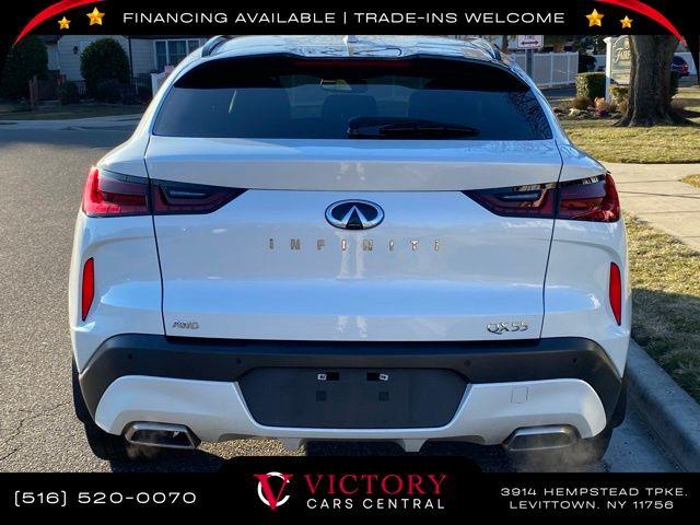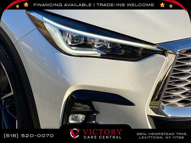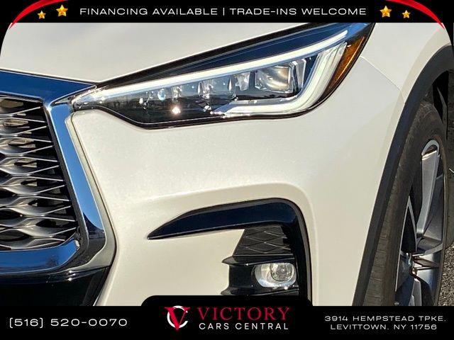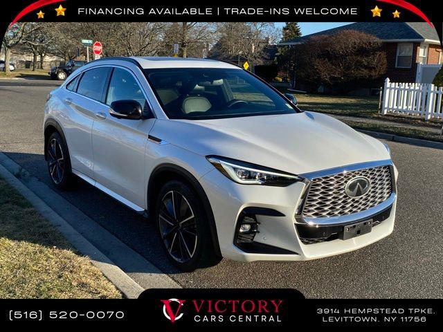 All pricing and details are believed to be accurate, but we do not warrant or guarantee such accuracy. The prices shown above may vary from region to region, as will incentives, and are subject to change. All cars are sold cosmetically As-Is. Vehicle information is based on standard equipment and may vary from vehicle to vehicle. Call or email for complete vehicle specific information. Price Does not include tax, title, license, destination charges, finance charges, or any reconditioning fees. Our special Internet pricing cannot be extended without a printed copy of the online pricing. The in-store price may exceed our special online pricing. Sorry but we cannot extend special pricing without a printed copy of the on-line pricing. To take advantage of our special Internet discounts, please print this page and present it to your salesperson at the BEGINNING of the transaction. Special Internet pricing posted on this ad/coupon/promotion is only available to customers who reference such pricing & present the ad at time of sale otherwise our store standard list price applies. Please be advised this ad is a Special Internet only ad. Prices can be modified and adjusted weekly, daily and sometimes hourly due to inquiries, bidding and website traffic on any Vehicles. All displayed inventory is subject to prior sale and all prices expire at midnight on the date displayed. Every reasonable effort has been made to ensure the accuracy of the information contained on this site, however absolute accuracy cannot be guaranteed. Advertised special excludes state tax, title, license, registration, NY state inspection, NYS tire recycling fee, finance charges, and dealer fees if applicable. Please verify any information in question with the dealership sales manager. This is easily done by calling us at 516-520-0070 or by visiting us at the dealership. **With approved credit. Radiant White 2023 INFINITI QX55 ESSENTIAL AWD CVT I4