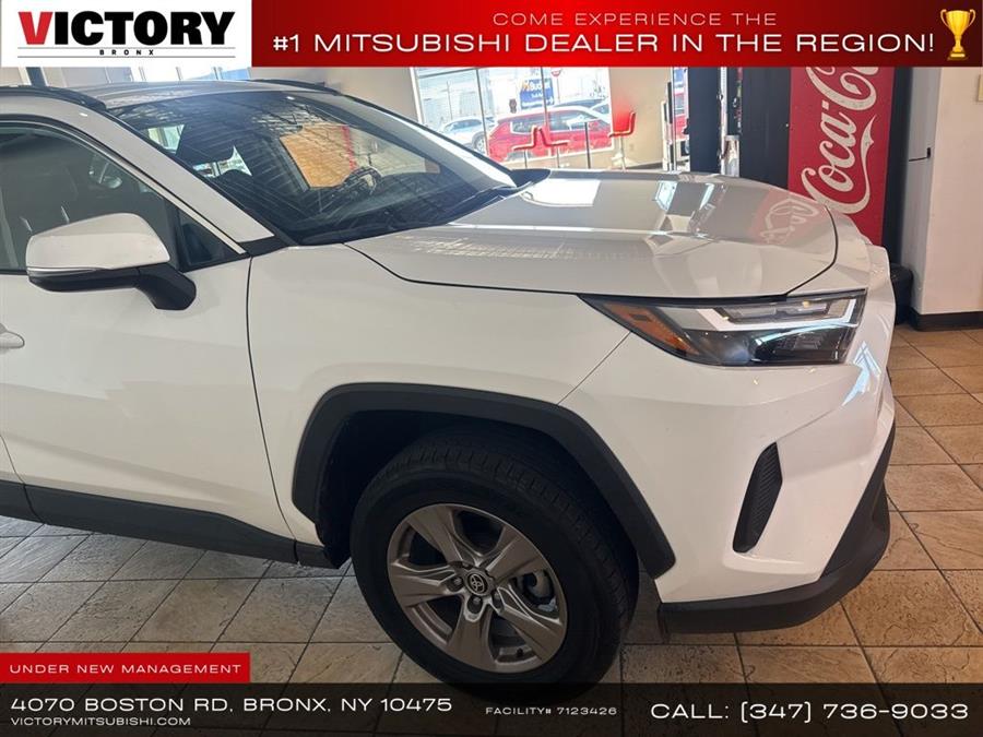 2023 Toyota RAV4 XLE Ice Cap 4D Sport Utility Save yourself Time and Money - Fill out a credit application online at victorymitsubishi.com and get pre-APPROVED! Financing available for all types of credit with low monthly payment that will fit you budget. Down Payment low as $599. Same day delivery. View our entire inventory by visiting our virtual showroom at victorymitsubishi.com - Only 2 blocks away from Exit 13 off I-95 or Minutes from exit 7 on the Hutchinson Parkway. While we make every effort to ensure the data listed here is correct, there may be instances where the pricing, options or vehicle features may be listed incorrectly. Dealer cannot be held liable for data that is listed incorrectly. Visit Victory Mitsubishi online at victorymitsubishi.com to see more pictures of this vehicle or call us at 718-515-4600 today to schedule your test drive. We will honor all cash prices from CarGurus customers. please refer to dealer’s website for exact pricing and for any incentives that we may apply! Our address is 4070 Boston Road, Bronx, NY 10475.